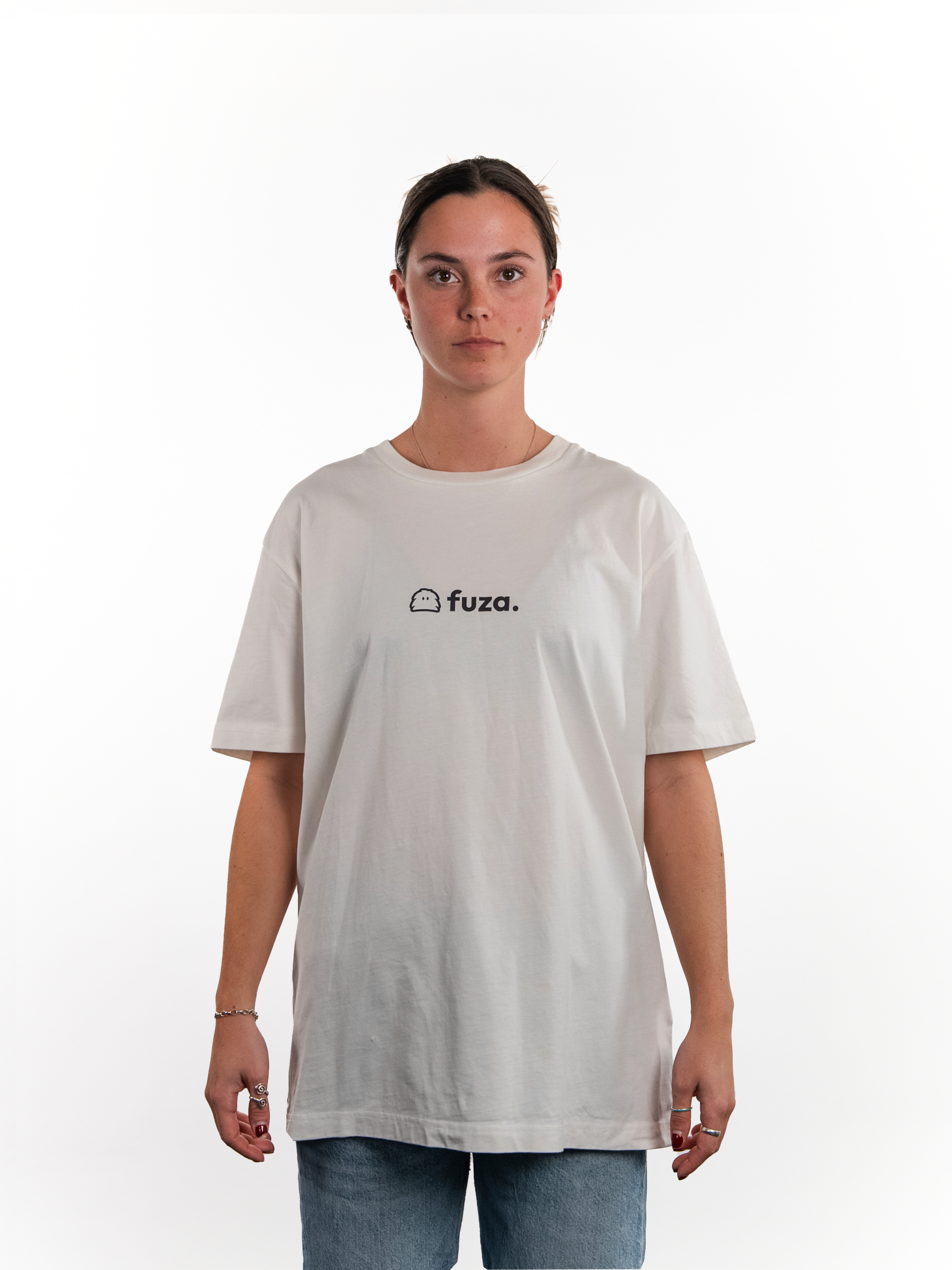 Introducing the fuza find your fuzz T-shirt, made from 100% recycled organic cotton. This short sleeve tee has both front and back prints, along with a soft and breathable fabric that's ideal for daily use.